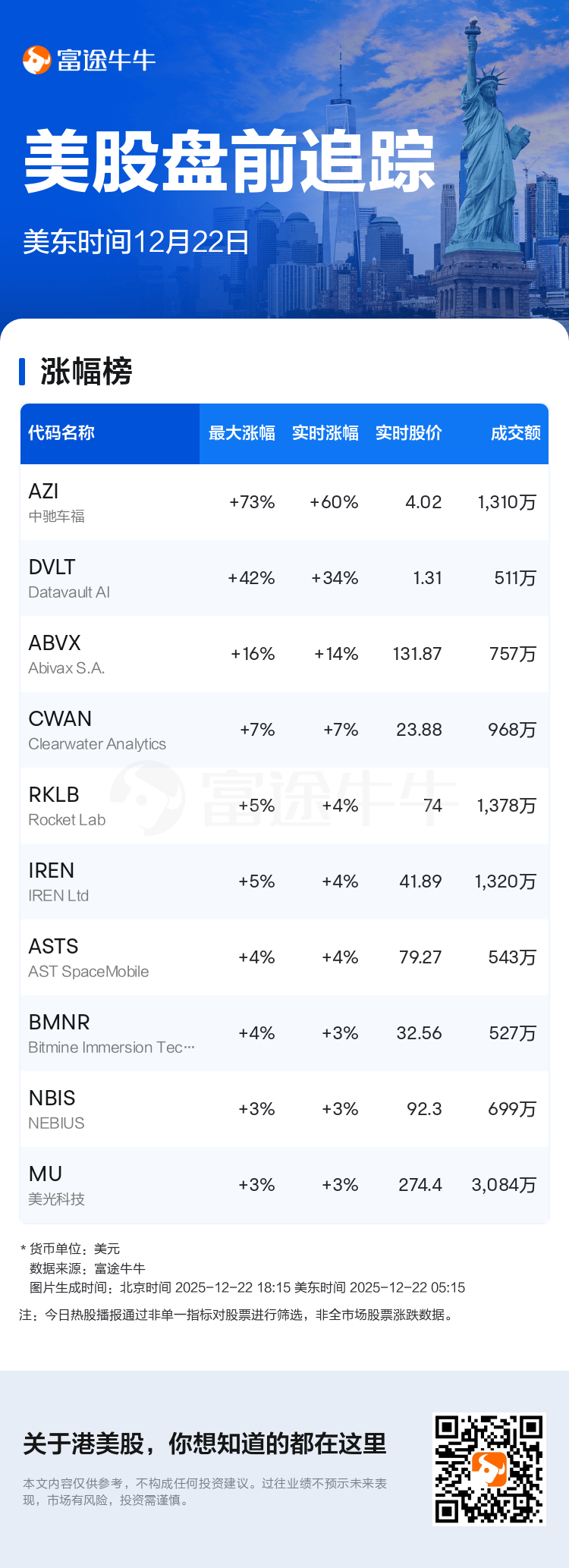 美东时间12月22日报道,以下为今日美股盘前热门个股。