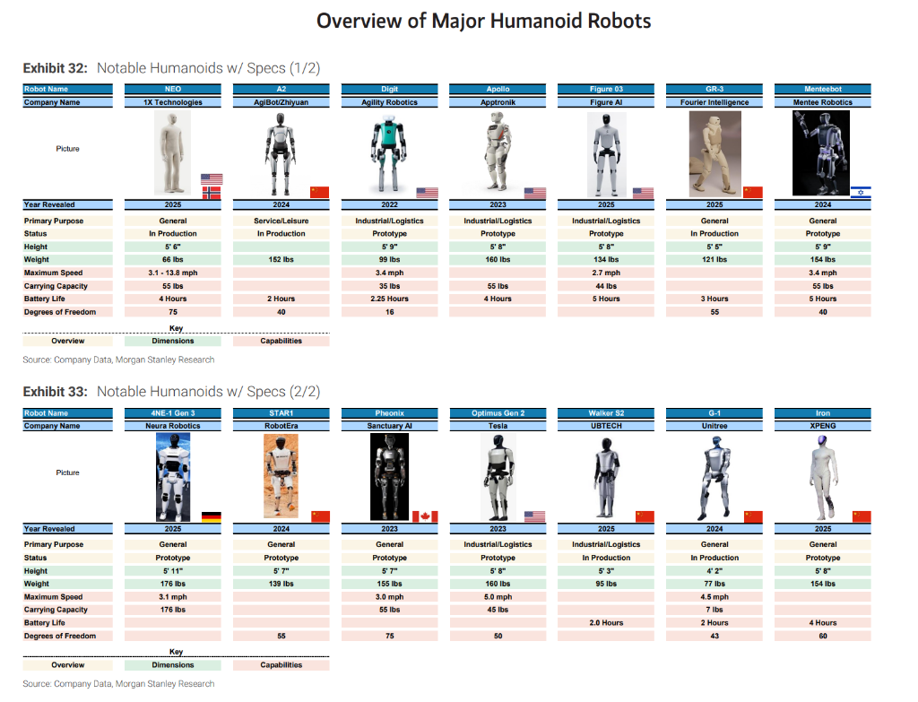 尽管美国这边的政策支持力度加大,但摩根士丹利指出,中国正在凭借其核心优势——制造业,继续巩固其领先地位。目前,几乎每一家主要的中国汽车和消费电子公司都以某种方式与人形机器人或AI赋能的机器人挂钩。