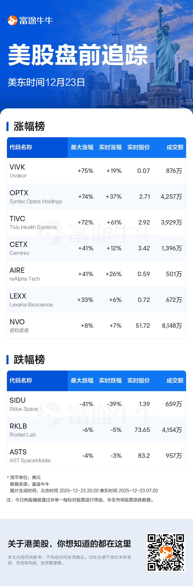 美东时间12月23日报道,以下为今日美股盘前热门个股。