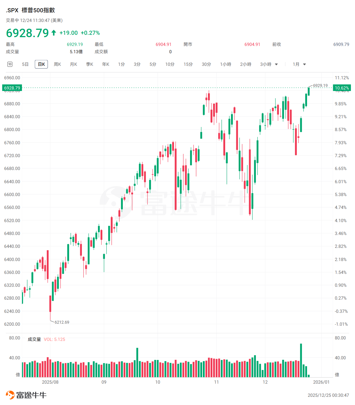 他指出:“成交量低且没有坏消息的影响,应该能让圣诞老人行情在2025年剩余时间里持续下去并保持良好态势……虽然科技股的估值较高,但一些像‘七巨头’这样的公司今年的表现实际上低于标普500指数,这表明还有更大的上涨空间,而且并非所有科技股的估值都处于失控或盲目乐观的状态。”