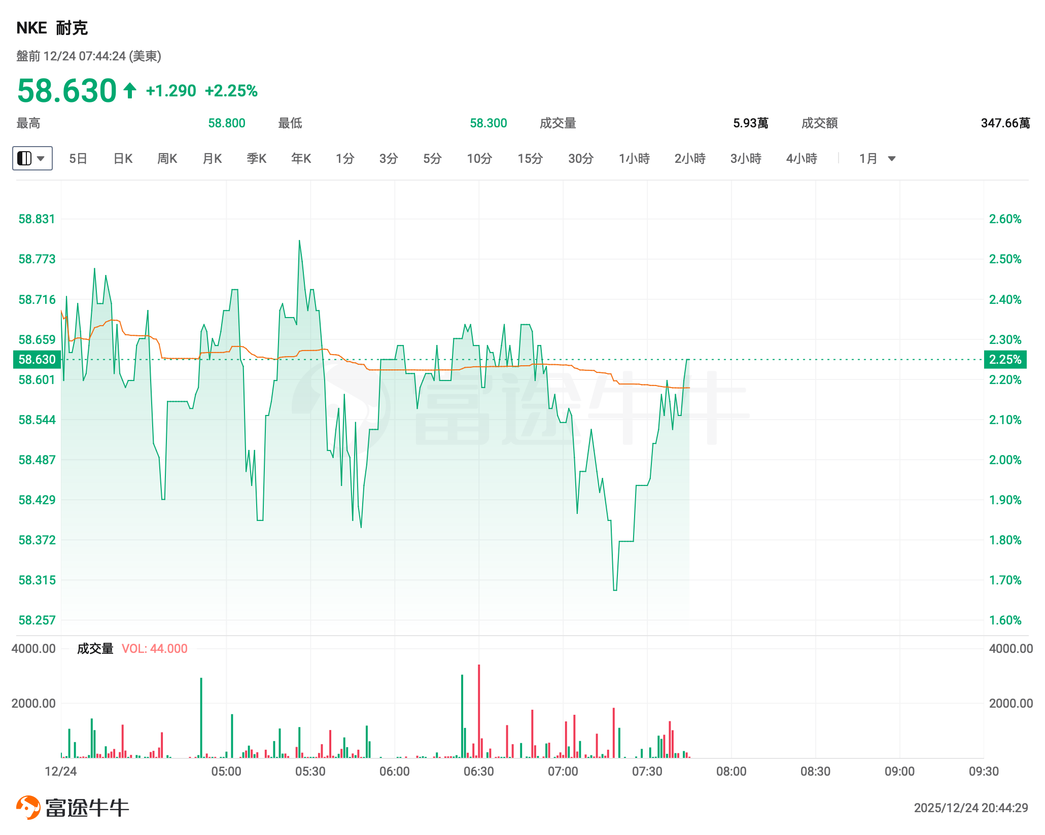 耐克盘前涨超2%,近日获苹果CEO库克“逢低买入”5万股