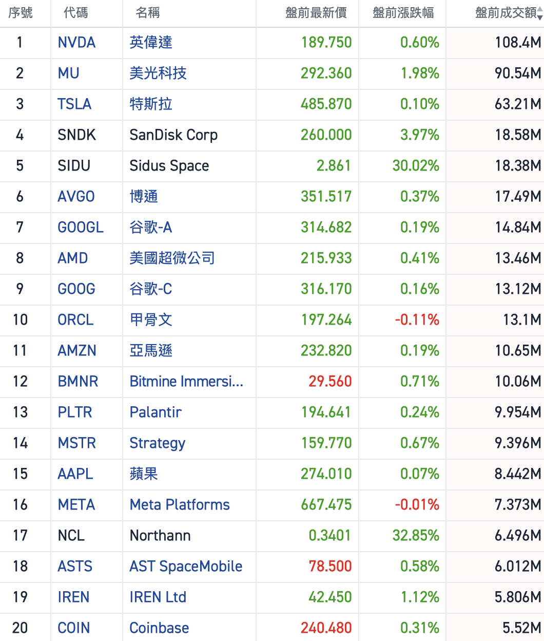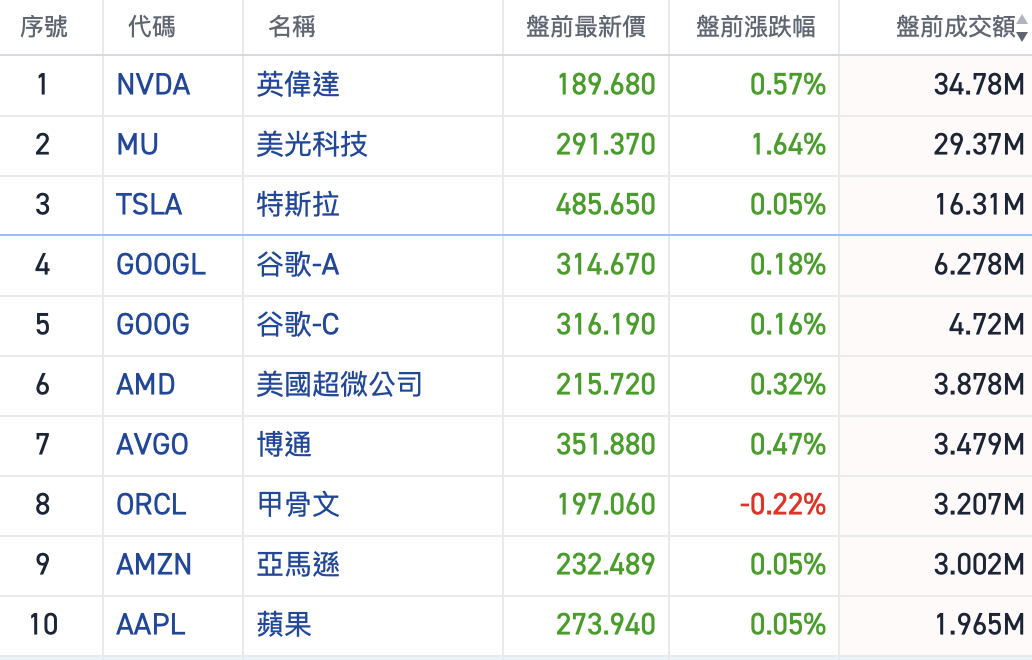 $明星科技股(LIST2518.US)$ 盘前多数上涨, $美光科技(MU.US)$ 涨近2%。