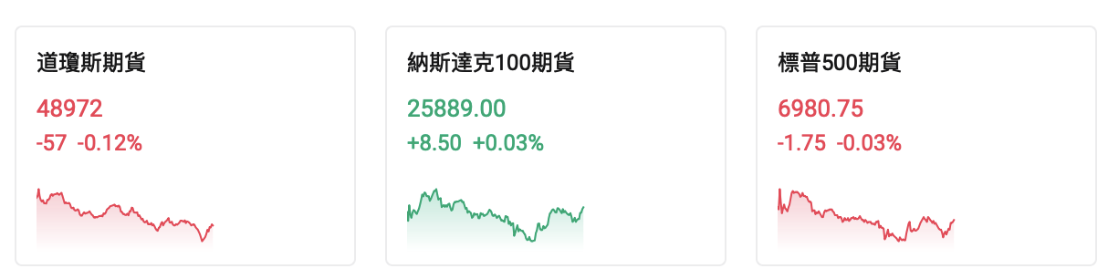 周五盘前,三大期指涨跌不一,道指期货跌0.12%,纳指期货涨0.03%,标普500期货跌0.03%。