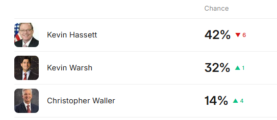 与此同时,投资者也在等待美国总统特朗普是否会在本周提名下一任美联储主席人选,以接替将于明年5月任期届满的鲍威尔,特朗普的任何提名意向信号,都可能在未来一周对市场造成影响。目前,三位“决赛圈”选手分别是白宫国家经济委员会主任凯文·哈西特、美联储前理事凯文·沃什,以及特朗普第一任期时提名的美联储理事克里斯托弗·沃勒。