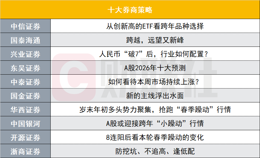 2025年的行情将如何收官?2026年又将是哪些领域独占鳌头?请看本周十大券商策略,各大券商给出的最新观点。