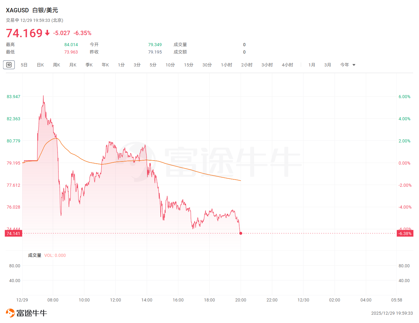 在经历此前连续疯涨之后,现货白银周一早盘经历过山车行情,在大涨6%逼近84美元/盎司后直线走低,目前跌超6%,日内最低跌破74美元/盎司。行情剧烈波动之际,社交平台X上流传的一则关于"系统重要性银行"因白银期货空头头寸爆仓的传闻引发市场广泛关注。