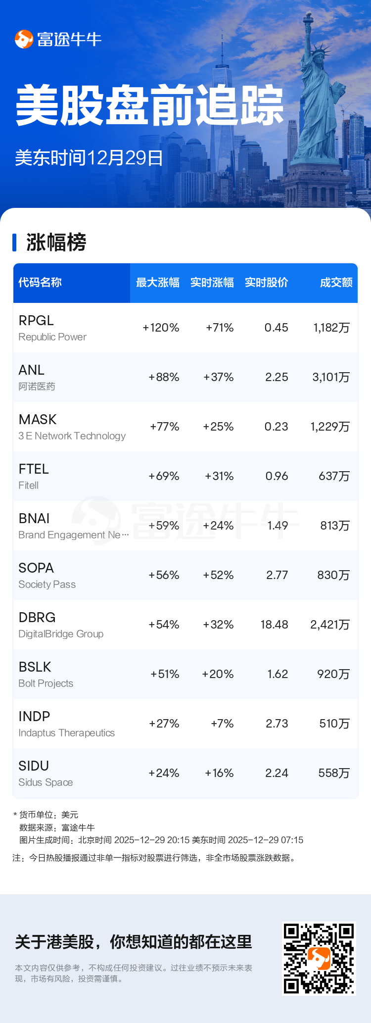 美东时间12月29日报道,以下为今日美股盘前热门个股。