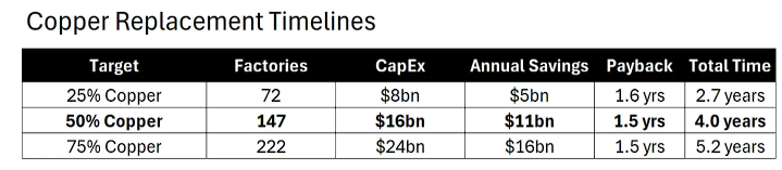 随着银价飙升,太阳能制造商可能转向使用铜。尽管Campbell指出铜替代白银在工业应用中需要至少4年的周期,但在价格暴涨背景下,这些叙事足以在短期内引发技术性抛售。