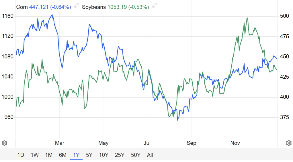 2026年展望:大豆与玉米市场将步入“面积调整与政策驱动”的博弈期。美国农业部预测,受美中贸易协议落地及生物燃料需求支撑,大豆种植面积有望反弹至8500万英亩,但全球供应过剩格局令价格承压,预测均价将微降至10.30美元/蒲式耳。然而,高盛等投行认为,若贸易采购超预期执行,大豆将迎来显著的估值修复。