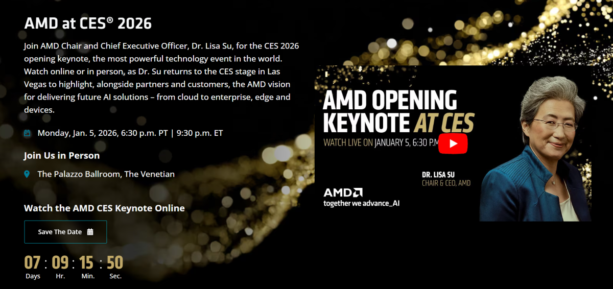根据日程,CES大会将于明年1月6日至9日举行。$英伟达 (NVDA.US)$掌门黄仁勋与AMD首席执行官苏姿丰将于当地时间1月5日(北京时间1月6日)先后发表主题演讲。