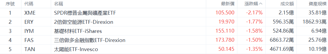 $基础材料ETF-iShares(IYM.US)$ 跌1.58%,成交额524.86万美元。