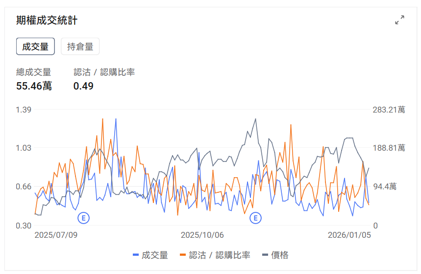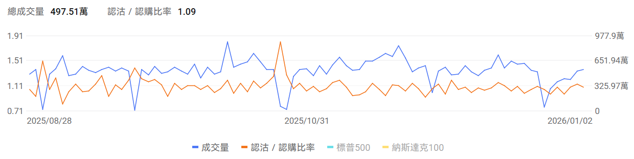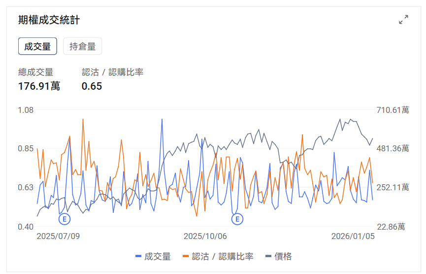 当前美股指数期权市场成交量小幅上行,认沽/认购比例下行。