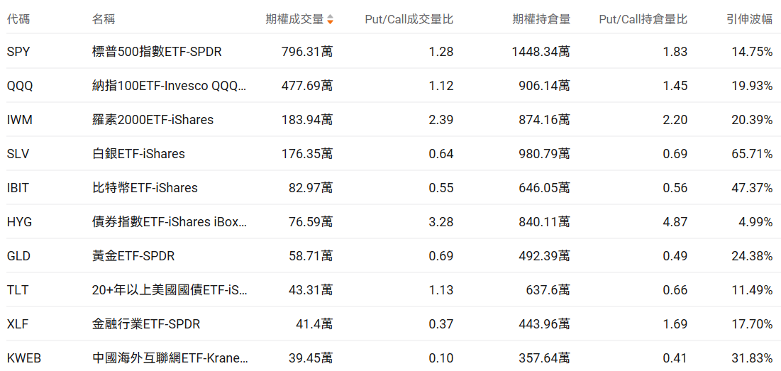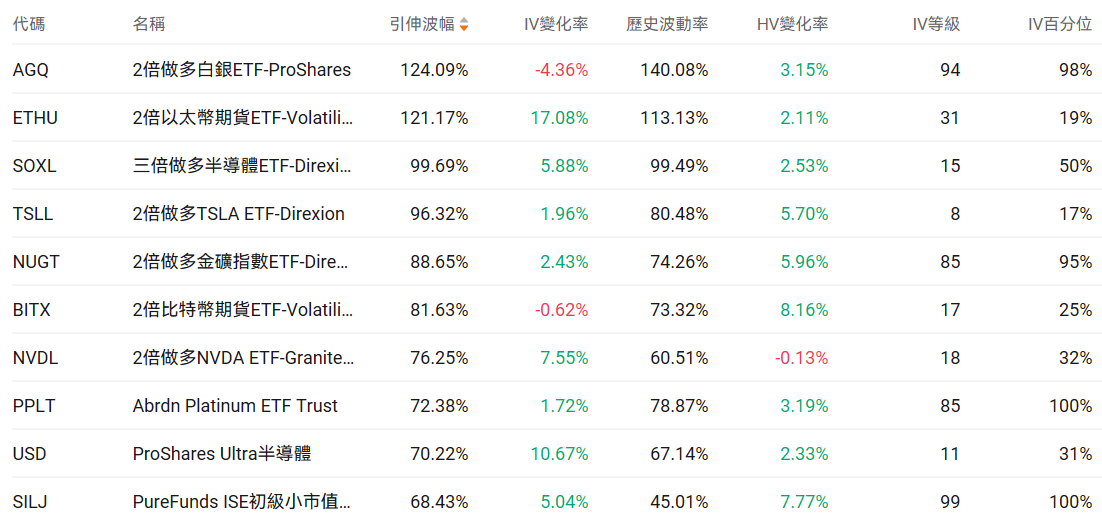 美股ETF引申波幅排行榜前十(标的要求:市值>100亿美元)