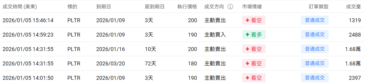 2、 $Palantir (PLTR.US)$ 上一交易日涨3.68%,前一日认沽/认购比例下行,成交量下行。