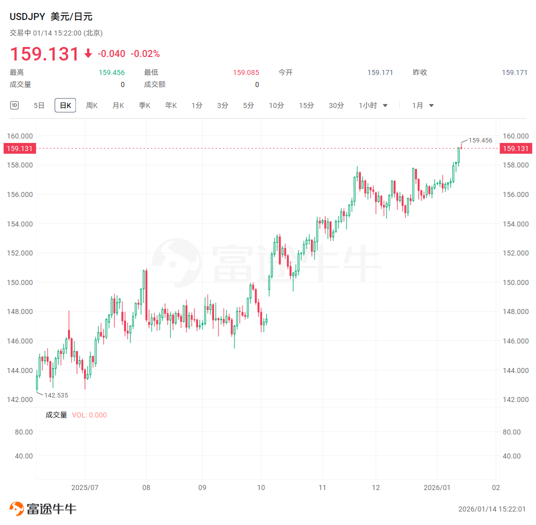 与此同时,日元兑美元跌破159关口,触及2024年7月以来最弱水平。星展集团研究部资深外汇策略师Philip Wee表示,市场可能继续试探日本决策者对日元贬值的容忍度。由于缺乏关于干预时机、规模或触发条件的明确指引,日元的投机压力依然居高不下,而提前大选可能进一步削弱日本财务省和央行在外汇市场的协调。