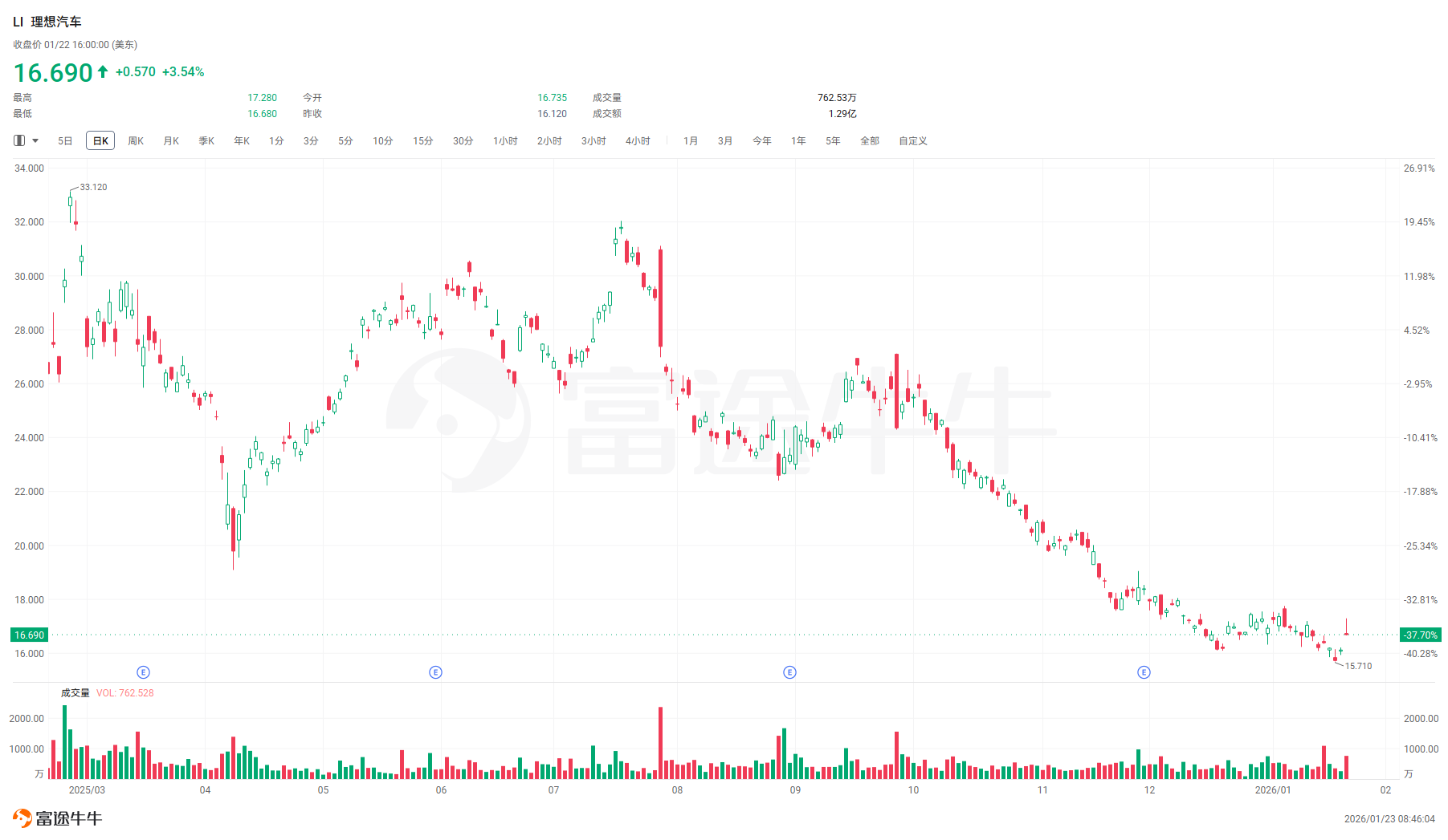 不过现阶段具身概念对估值的帮助好像是真的,理想美股开盘一度涨约 7%。截至收盘,涨幅回落至 3.54% 左右。