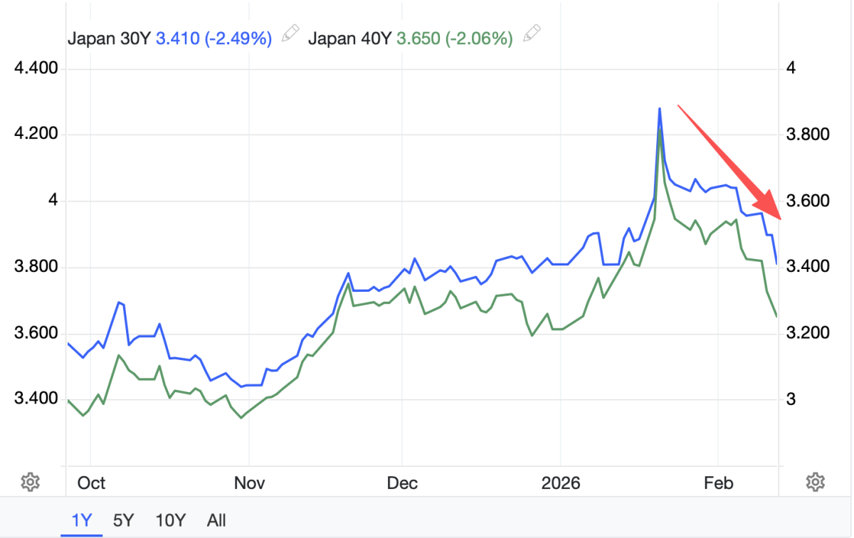 日本超长期国债在大选后继续走强,高市早苗对食品消费税削减计划的谨慎表态缓解了投资者对财政政策的担忧,推动收益率进一步回落。