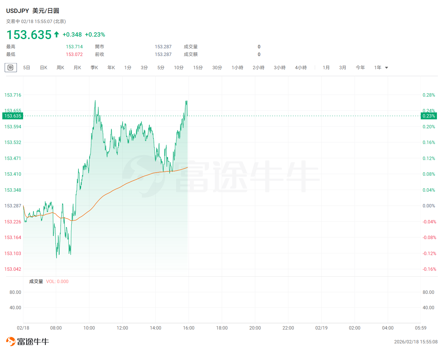 财政宽松预期下,$美元/日元 (USDJPY.FX)$短线上行,报153.635。
