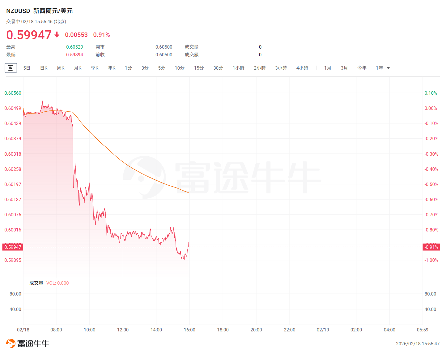$新西兰元/美元 (NZDUSD.FX)$下跌超0.9%、跌破0.600关键关口,政策敏感的2年期新西兰国债收益率扩大跌幅,交易员下调了对新西兰央行加息的预期。市场对10月前加息的定价从此前的90%降至约75%。