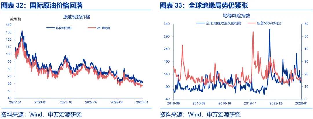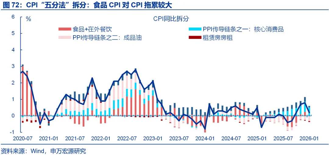 展望后续:相比于上游涨价的影响,中下游价格表现更加关键,我们持续跟踪中下游反内卷的政策效果。过去三年,大宗商品价格仅能解释30%左右PPI波动,PPI价格更多受到中下游内卷导致价格“超跌”的影响。即便大宗价格有延续上行的可能,上游价格向下游传导受阻,中下游PPI回升幅度或也有限,我们维持PPI弱修复的判断。CPI方面,春节错位下,2月基数走低,叠加金价高位,服务消费改善,或拉动CPI明显回升,年初CPI或呈现“V型”走势。