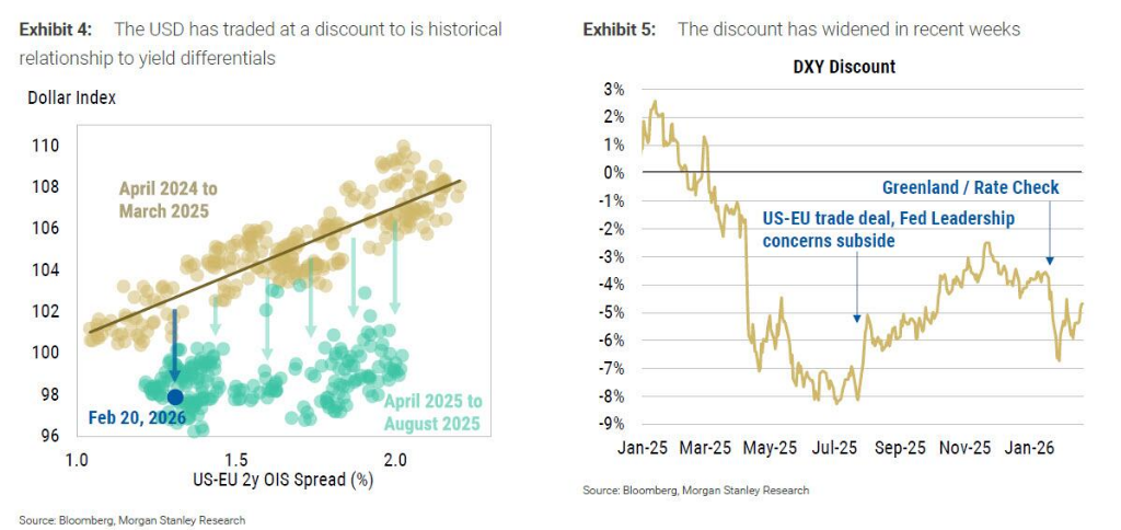 在美元市场,摩根士丹利预计美国政府使用即时关税授权作为外交政策工具的余地减少,可能在边际上降低与投资者对持有美元敞口保持谨慎相关的美元负面风险溢价。