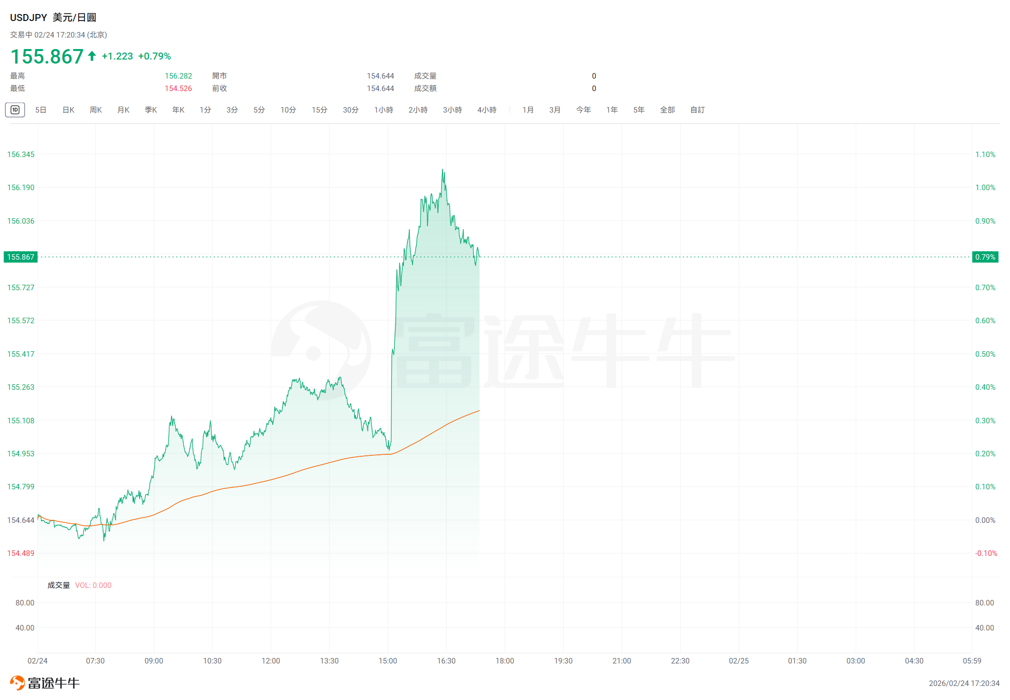 如果属实,高市早苗对近期额外加息的抵触情绪可能会让日本央行的时间表变得复杂,因为央行与新近获得强势地位的政府之间的协调正变得更加微妙。受此报道影响,$美元/日元 (USDJPY.FX)$日内一度涨1%,至156上方。