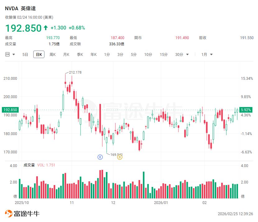 英伟达将于2月25日美股盘后发布季度财报,市场预期营收661亿美元、每股收益1.54美元。分析师普遍乐观,但认为亮眼数据未必推动股价上涨,真正催化剂或在三月GTC大会释放。今年英伟达股价涨幅仅约2%,远逊于费城半导体指数同期16%的涨幅。