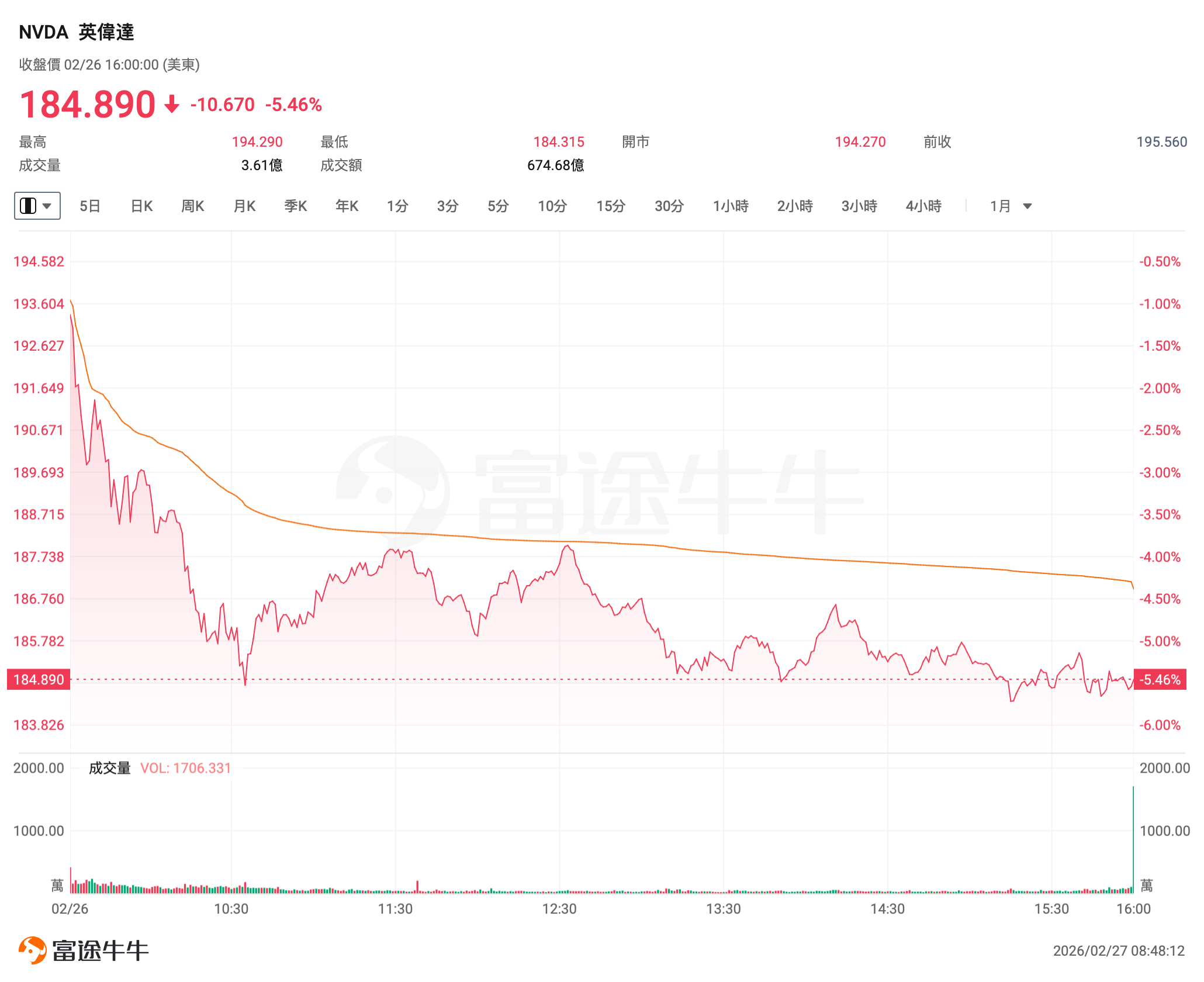 周四美股盘中,英伟达股价上演了剧烈的走势反转,盘中急速下挫至下跌5%。这一大幅波动直接拖累了整体大型科技股的表现。