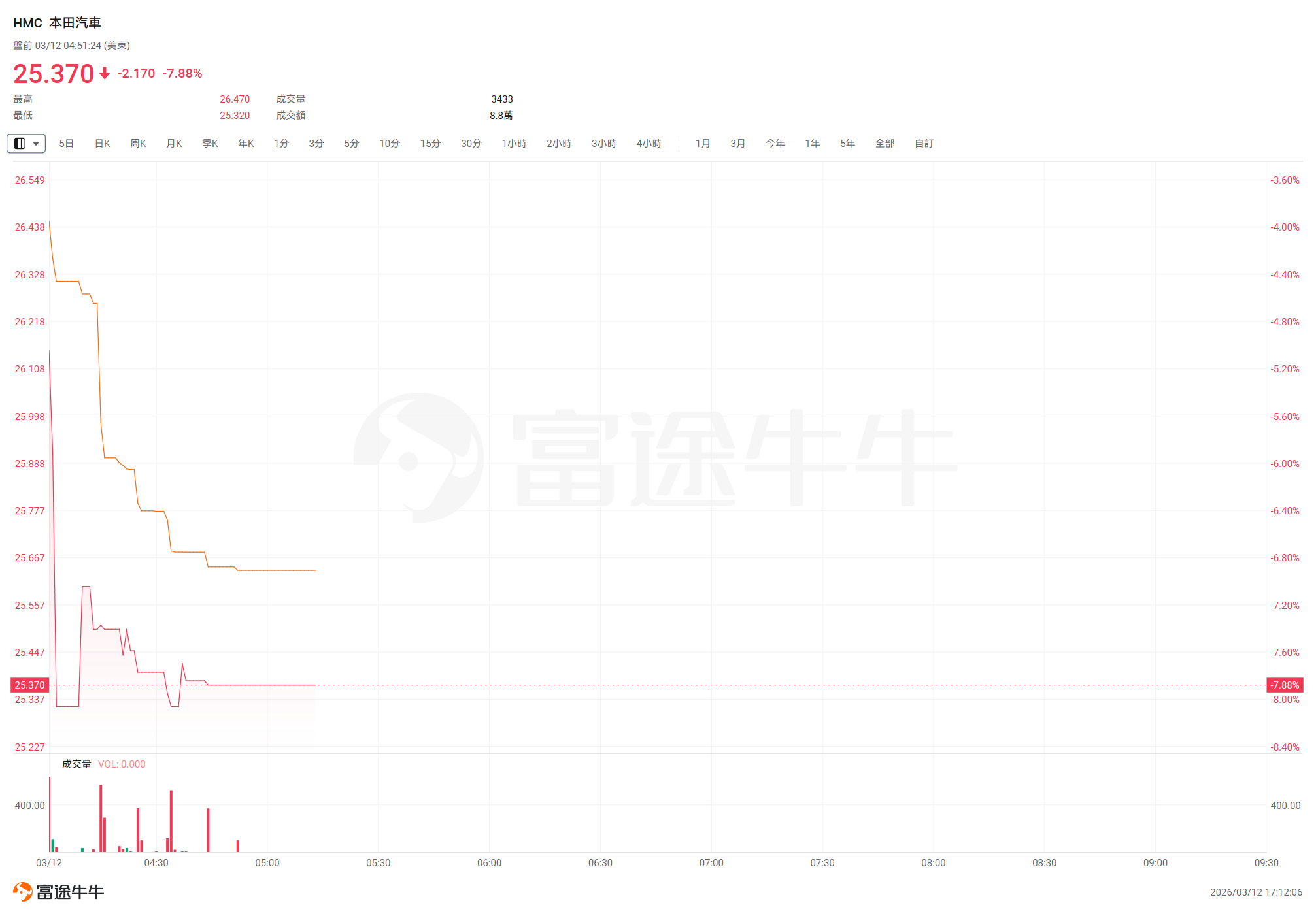 今日美股盘前, $本田汽车 (HMC.US)$股价跌近8%,最新报25.37美元/股。