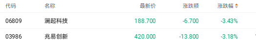 截至收盘,澜起科技(06809.HK)跌3.43%、兆易创新(03986.HK)跌3.18%。