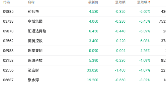 同时SaaS概念股也出现调整。截至收盘,阜博集团(03738.HK)跌6.45%、狮腾集团(02562.HK)跌6.08%、乐享集团(06988.HK)跌4.26%。