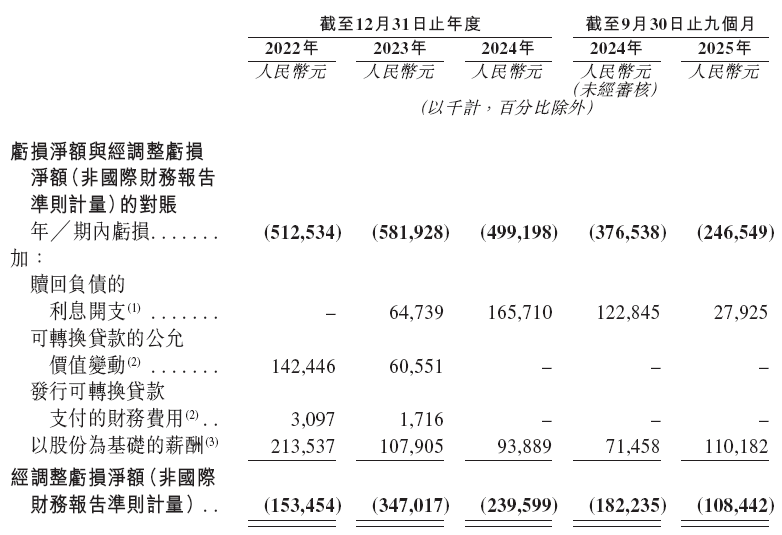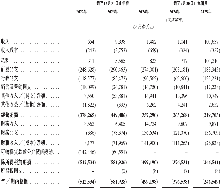 招股书显示,在过去的2022年、2023年、2024年和2025年前九个月,剂泰科技的营业收入分别为人民币55.4万、933.8万、148.2万和10,163.7万元,相应的净亏损分别为人民币5.13亿、5.82亿、4.99亿和2.47亿元,相应的净亏损分别为人民币1.53亿、3.47亿、2.40亿和1.08亿元。