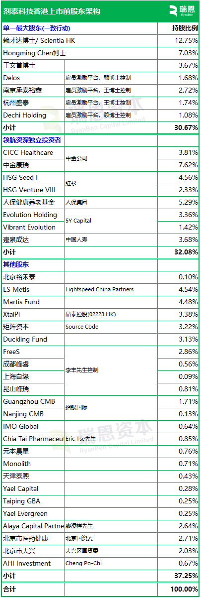 根据招股书披露,剂泰科技在香港上市前的股权架构中,