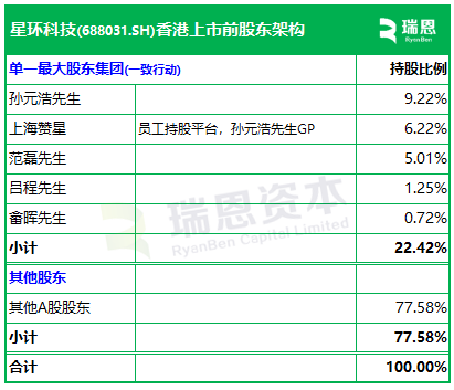 孙元浩先生、上海赞星、范磊先生、吕程先生、畲晖先生,为一致行动人,合计持股约22.42%,为单一最大股东集团。