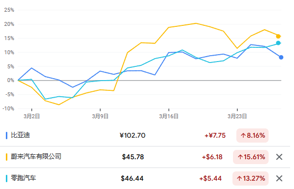 伊朗战争引发的原油价格冲击,正在为中国电动车板块带来意外的催化剂。比亚迪港股3月累计上涨8%,与 $蔚来-SW (09866.HK)$ 、 $零跑汽车 (09863.HK)$ 成为 $恒生科技指数 (800700.HK)$ 同期最佳表现股票之一。此前数月,该板块因国内需求疲软及价格战压力持续承压。