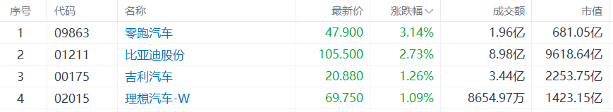 3月27日,高油价冲击下,港股 $新能源车企 (LIST22910.HK)$表现活跃, $比亚迪股份 (01211.HK)$ 涨近3%,3月以来累涨超11%;$零跑汽车 (09863.HK)$ 涨超3%, $吉利汽车 (00175.HK)$ 、 $理想汽车-W (02015.HK)$ 涨超1%。