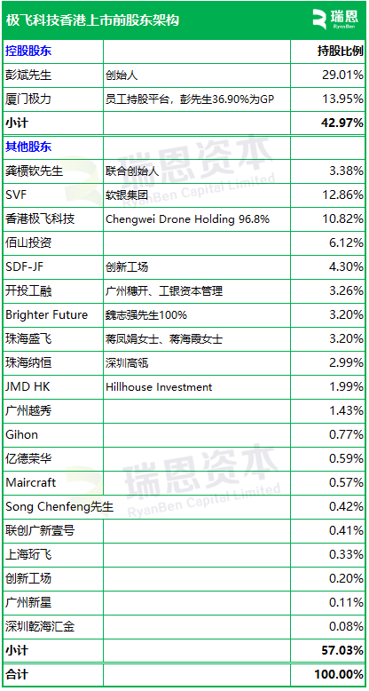 招股书显示,极飞科技在香港上市前的股东架构中,