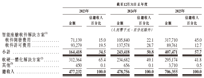 根据弗若斯特沙利文的资料,于2023年、2024年及2025年,公司的智能座舱软件解决方案及软硬一体化解决方案服务中国15大最畅销乘用车品牌中12款车型,均属于于2025年按中国销量计的前十大整车厂。