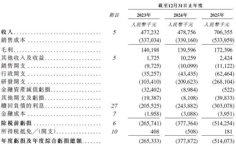 财务数据显示,在过去的2023年、2024年和2025年,四维智联的营业收入分别为人民币4.77亿、4.79亿和7.06亿元,相应的净亏损分别为人民币2.65亿、3.78亿和5.14亿元。