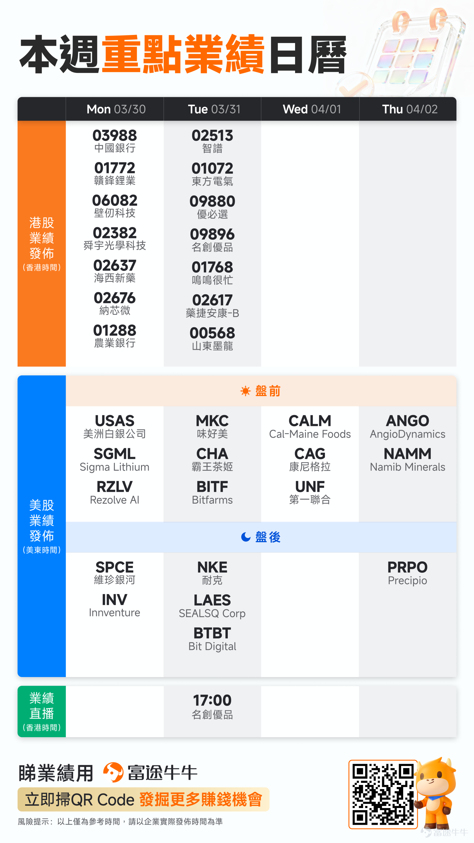 新一周重点业绩日历