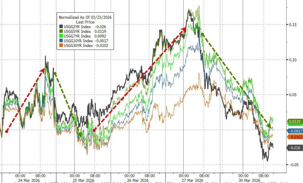 值得一提的是,周一美债价格的反弹,也标志着收益率连续第二天在油价上涨的同时下跌。这与3月大部分时间里的情形相反——当时美债收益率随着能源价格飙升而爬升,因市场担心伊朗战争可能引发通胀上升。