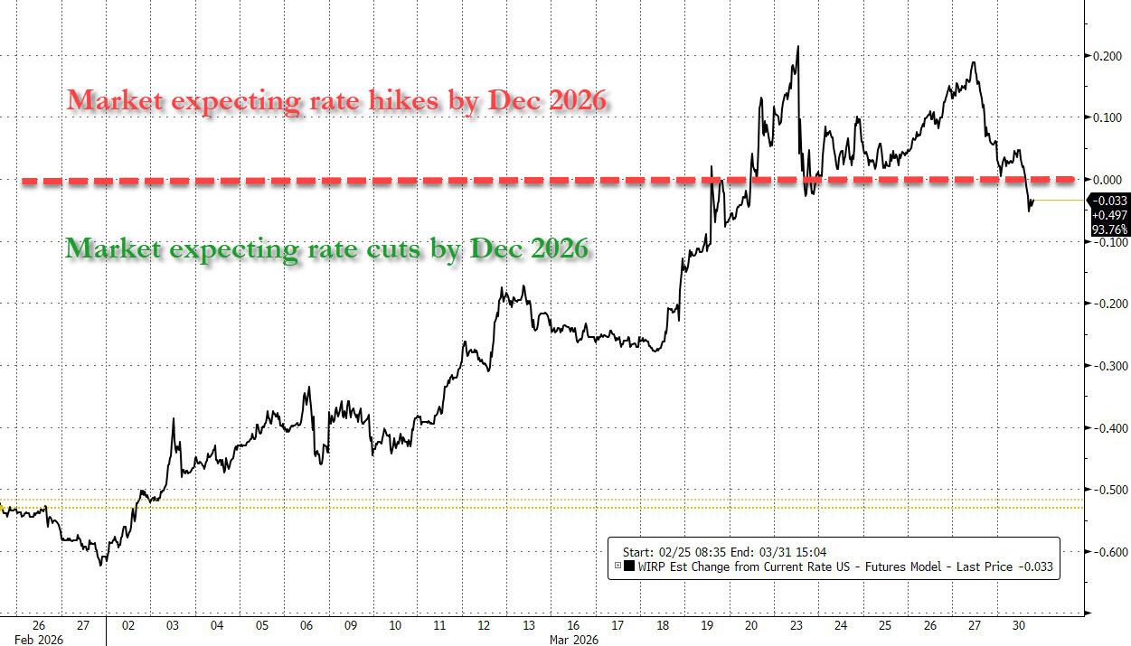 ①上周初,期货市场定价年底前加息是板上钉钉的事,并直到上周五仍认为此举极有可能发生;②然而在周一,情绪发生了巨大转变,以至于交易员一度认为年底前降息的可能性达到20%。