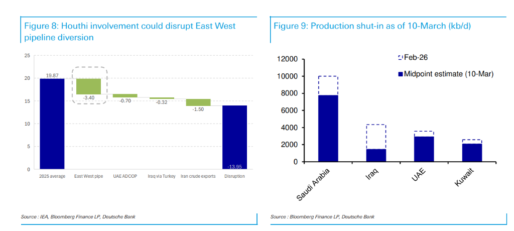 德意志银行认为,弥补这一缺口的可能选项包括:IEA成员国提高产量承诺、海峡重开后OPEC紧急增产,以及动用约12亿桶的大规模储备。