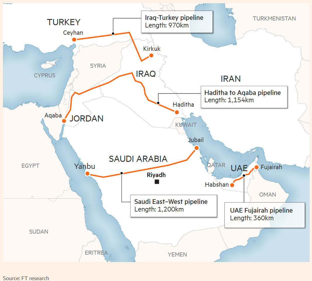 英国《金融时报》报道称,伊朗对霍尔木兹海峡的无限期控制所带来的威胁,正促使海湾国家重新审视代价高昂的管道项目,以期绕过这一咽喉要道,使其能够继续出口石油和天然气。官员与行业高管表示,新建输油管道可能是降低海湾国家长期受制于海峡运输中断风险的唯一途径,尽管此类项目造价高昂、政治复杂且需耗时数年才能完工。