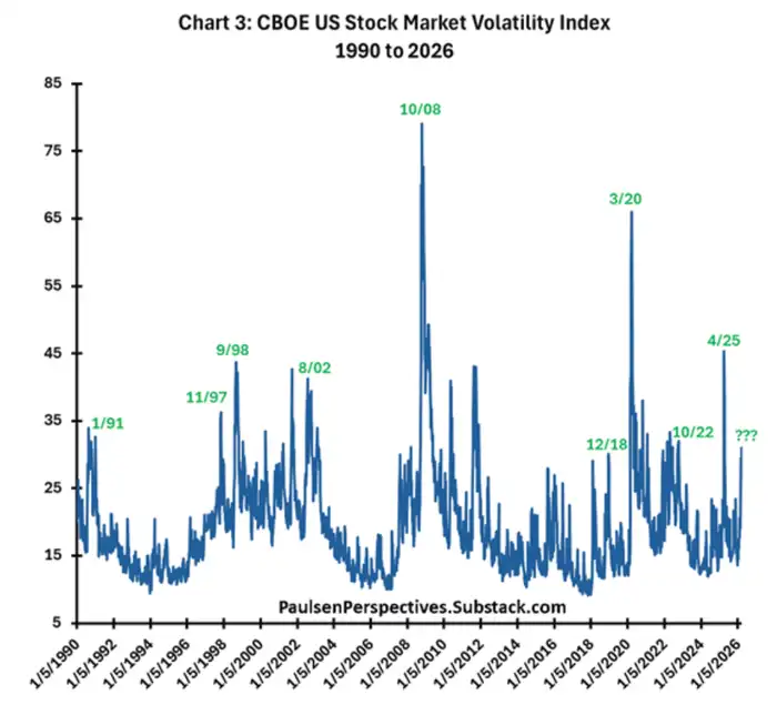 他还补充说,过去VIX指数在30左右波动时,也往往伴随着市场上的“几个历史性的绝佳买入机会”。