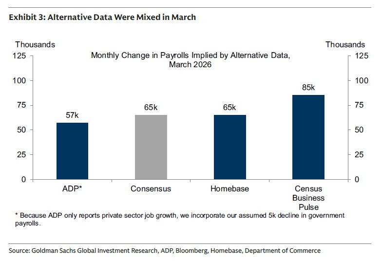 混合/中性因素则是3月份衡量就业增长的其他指标喜忧参半。高盛追踪的就业指标平均倾向认为3月就业增长6.9万人。