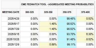 美国国债收益率在强劲非农数据公布后上涨,数据强化了市场对美联储将更长时间维持利率不变而非降息的预期。$美国10年期国债收益率 (US10Y.BD)$在就业数据公布后上升4.7个基点至4.36%,反映利率预期的2年期收益率上升6.6个基点至3.862%。期货市场显示,4月28日至29日的FOMC会议几乎没有可能采取任何行动,CME FedWatch数据显示,美联储维持利率不变至年底的可能性超过90%。