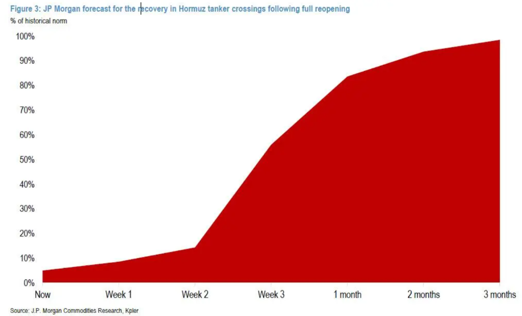 就算海峡一旦重开,供应也不会立刻恢复。摩根大通设定了三个阶段: