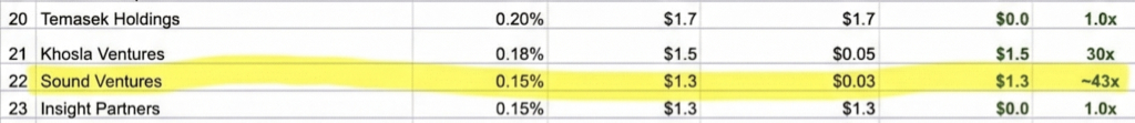 股权表第22行披露了一个颇具话题性的名字:Sound Ventures。